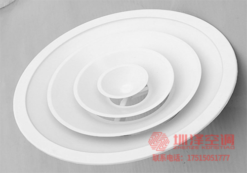 1、圓形散流器是多層錐形結構,通常安裝在寒冷和溫暖房間的天花板上。其送風氣流為附著式,具有內感好、送風溫差大、送風氣流均勻、抑制體感氣流等特點。